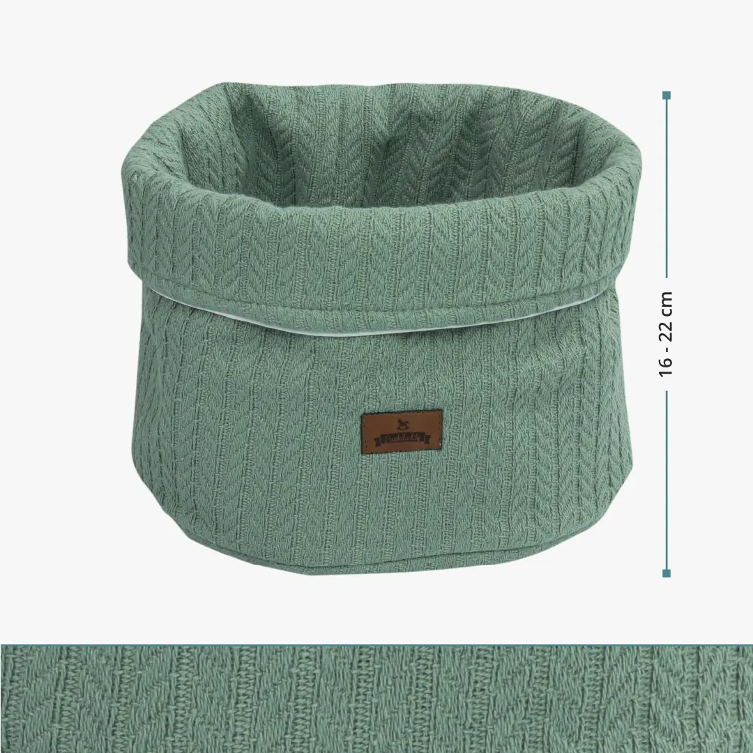 Der Aufbewahrungskorb ist ganz einfach mit weiteren Produkten aus der Zopfstrickmuster-Kollektion kombinierbar.