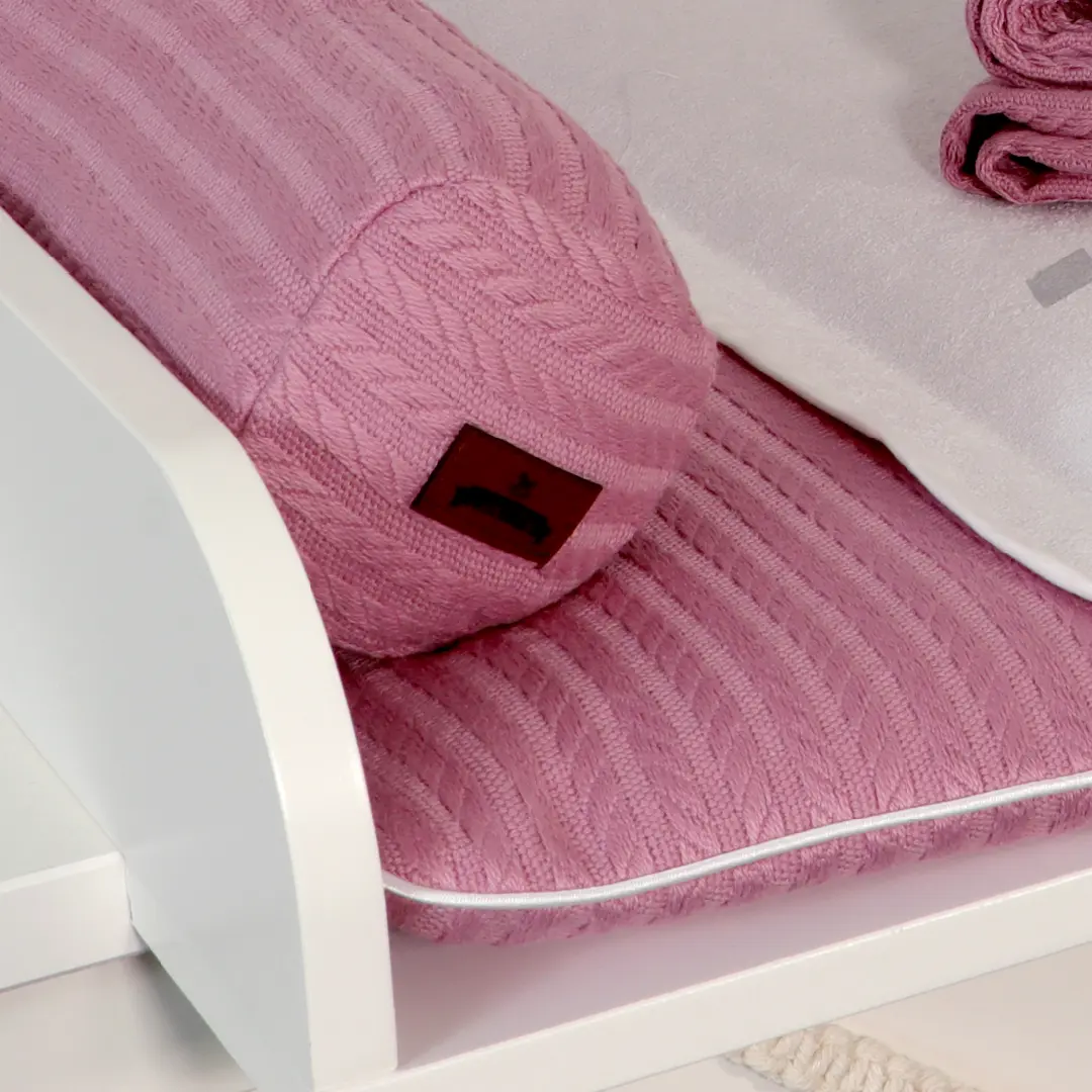 Die Bettumrandung Aurora im Zopfstrickmuster besteht aus 100% Strick-Baumwolle im Außenmaterial und ist mit einer weichen und atmungsaktiven Polyester-Vliesstoff-Füllung ausgestattet. Sie wurde speziell für Babys entwickelt, die bereits anfangen, sich vom Rücken auf den Bauch zu rollen und sich im Schlaf zu bewegen. Zusätzlich bietet die Umrandung Schutz vor Zusammenstößen mit den Gitterstäben und verhindert das Einklemmen von Beinen oder Händen.