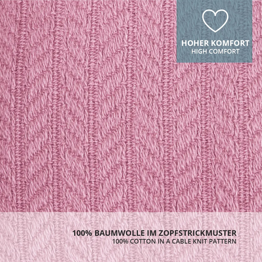 Die Bettumrandung ist ganz einfach mit weiteren Produkten aus der Zopfstrickmuster-Kollektion kombinierbar.