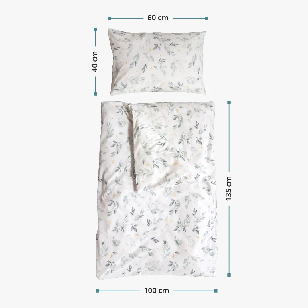 | Maße: | Bettdeckenbezug: 135x100 cm, Kissenbezug: 60x40 cm |