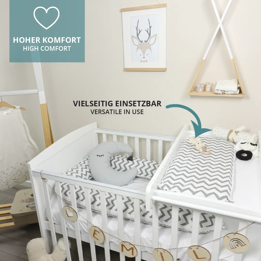Was unsere Produkte besonders macht, ist nicht nur ihre Funktion, sondern auch ihr Design. Ob zarte Muster, liebevolle Stickereien oder zeitlose Motive – bei uns findest du Textilien, die genauso gut aussehen wie sie sich anfühlen. Damit das Kinderzimmer ein Ort wird, der Wärme ausstrahlt – und dein Baby sich vom ersten Tag an geborgen fühlt.