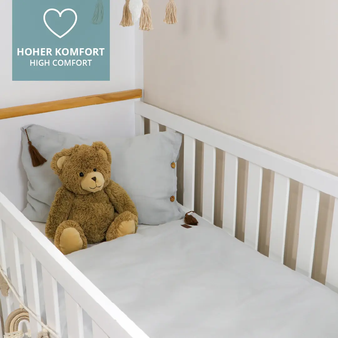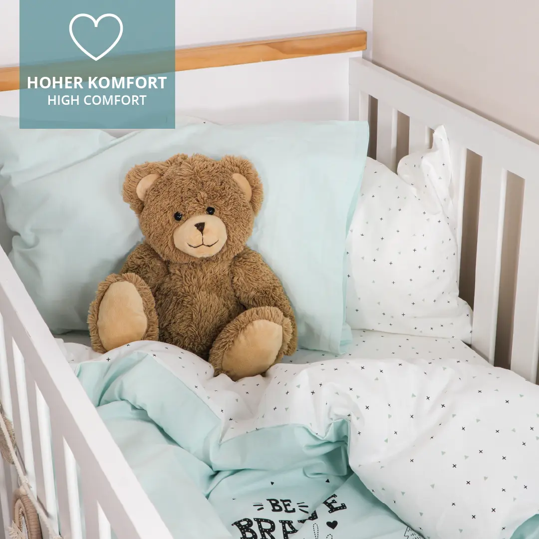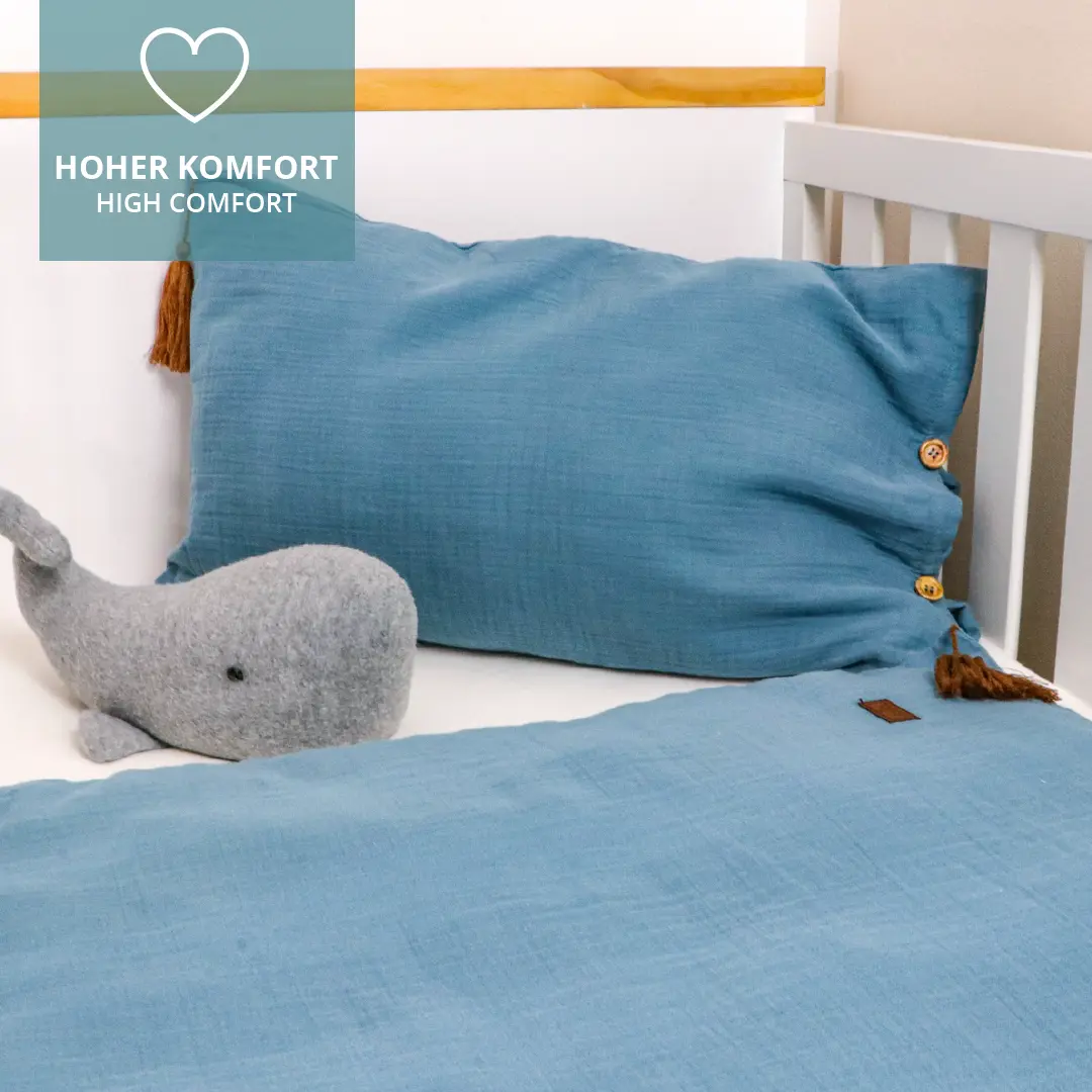 Für einen guten Schlaf ist neben einer guten Matratze auch die richtige Bettwäsche ausschlaggebend für das Wohlbefinden Deines Kindes. Für Babys und Kleinkinder sind daher die Verwendung hochwertiger und reiner Baumwollmaterialien von hoher Bedeutung. Unsere Bettwäsche-Sets mit Kopfkissen und Bettdeckenbezug schmiegen sich angenehm an die Haut an. Wie alle unsere Textilen sind auch unsere Bettwäschen mit einen OEKO TEX 100 Standard ausgezeichnet.