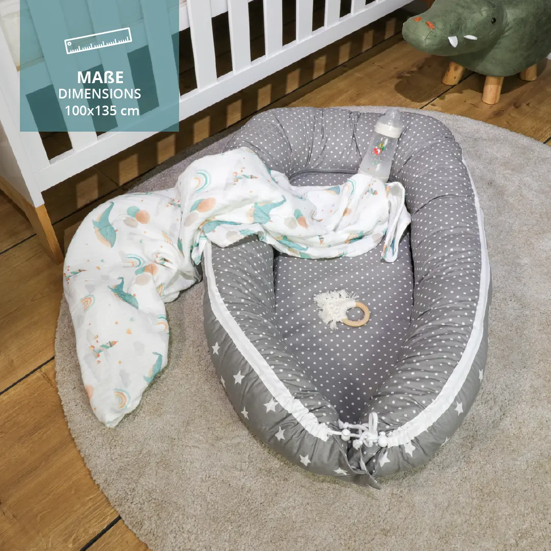 Einfach niedlich, ohne sich dabei zu sehr in den Vordergrund zu drängen: Die Designs unserer Sets und Geschenke sind darauf ausgelegt, selbständig zu gefallen und sich zugleich harmonisch in fast jeden Wohnstil einzufügen. Dafür setzen wir auf sanfte Farben und zeitlose Motive wie Sterne, Punkte, Wellen oder florale Muster.
