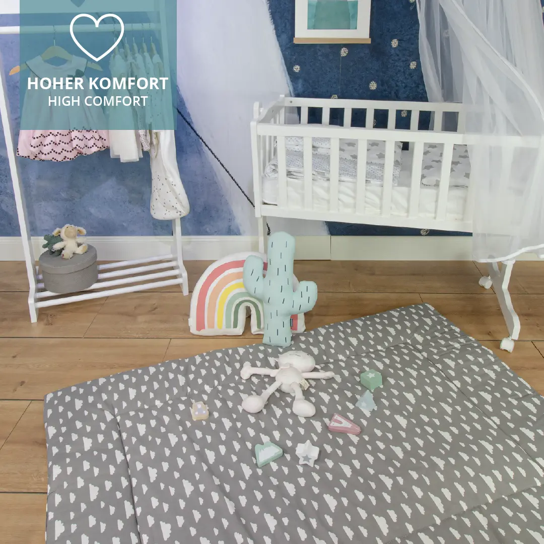 Auf dem Boden kann es viel zu hart für Dein Kind sein, daher ist bei der Krabbeldecke auf eine gute Polsterung zu achten. So kannst Du das potenzielle Verletzungsrisiko zuverlässig minimieren, sollte Dein Schatz doch einmal umfallen – und zugleich schützt Du Deinen Liebling auch vor Bodenkälte.
