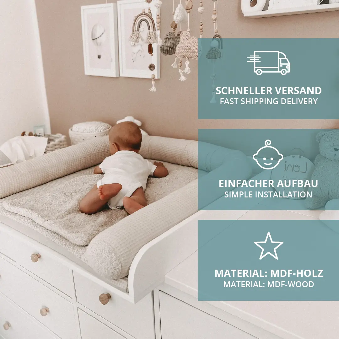 Das Regal passt, in Kombination mit Puckdaddy Wickelaufsätzen, hinter alle Kommoden (z.B. Hemnes) mit einer Höhe von 96 cm.