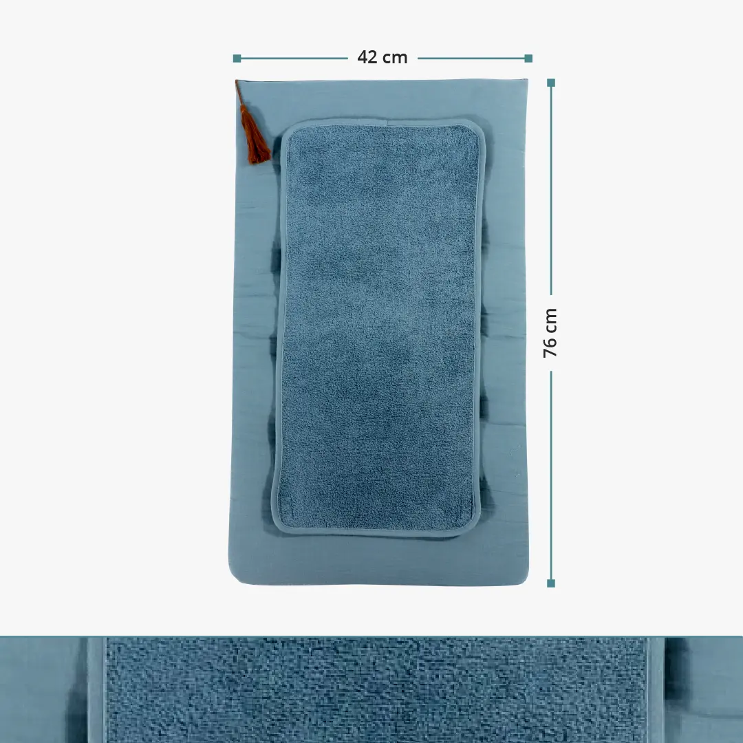 Der abnehmbare Frotteebezug ist ein praktisches Detail für den täglichen Wickelgebrauch, welcher sich im Handumdrehen an den Ecken mithilfe von Metall-Druckknöpfen entfernen und mühelos waschen lässt.