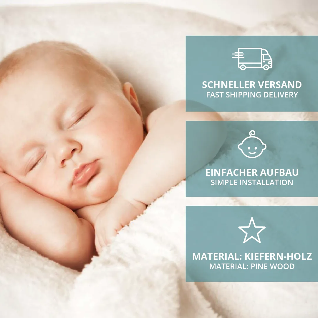 Mit dem Wickelaufsatz Kian entsteht ein praktischer und moderner Wickelplatz. Dieser Wickelaufsatz passt auf alle Kommoden mit einer Tiefe von 50-51 cm und einer Mindestbreite von 108 cm, wie die schmale IKEA Hemnes Kommode mit 3 Schubladen.