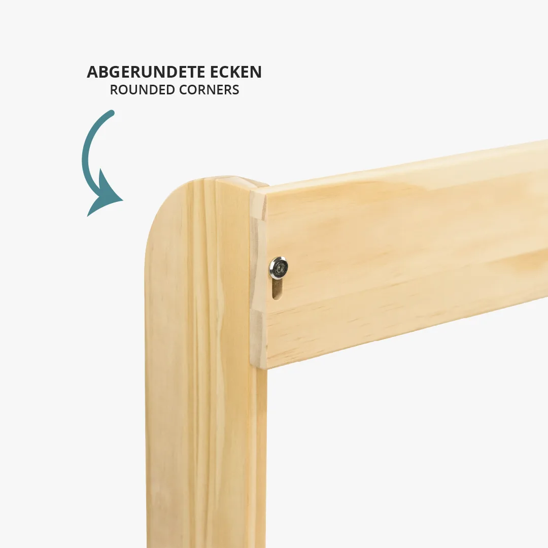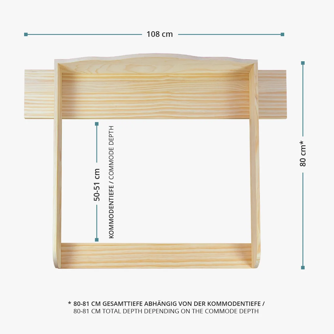 Dank der integrierten Blende schließt der Wickelaufsatz bündig mit der Wand und der Kommode ab und schafft zusätzliche Ablagefläche. Der Wickelaufsatz in natur mit abgerundeten Kanten verfügt über ein geschwungenes Rückenteil. Mit einer Liegefläche von 77x78 cm bietet der Wickelaufsatz viel Platz beim Wickeln. Der Wickelaufsatz mit Blende lässt sich besonders gut mit anderen Artikeln mit Holz-Optik oder geschwungenen Elementen kombinieren.