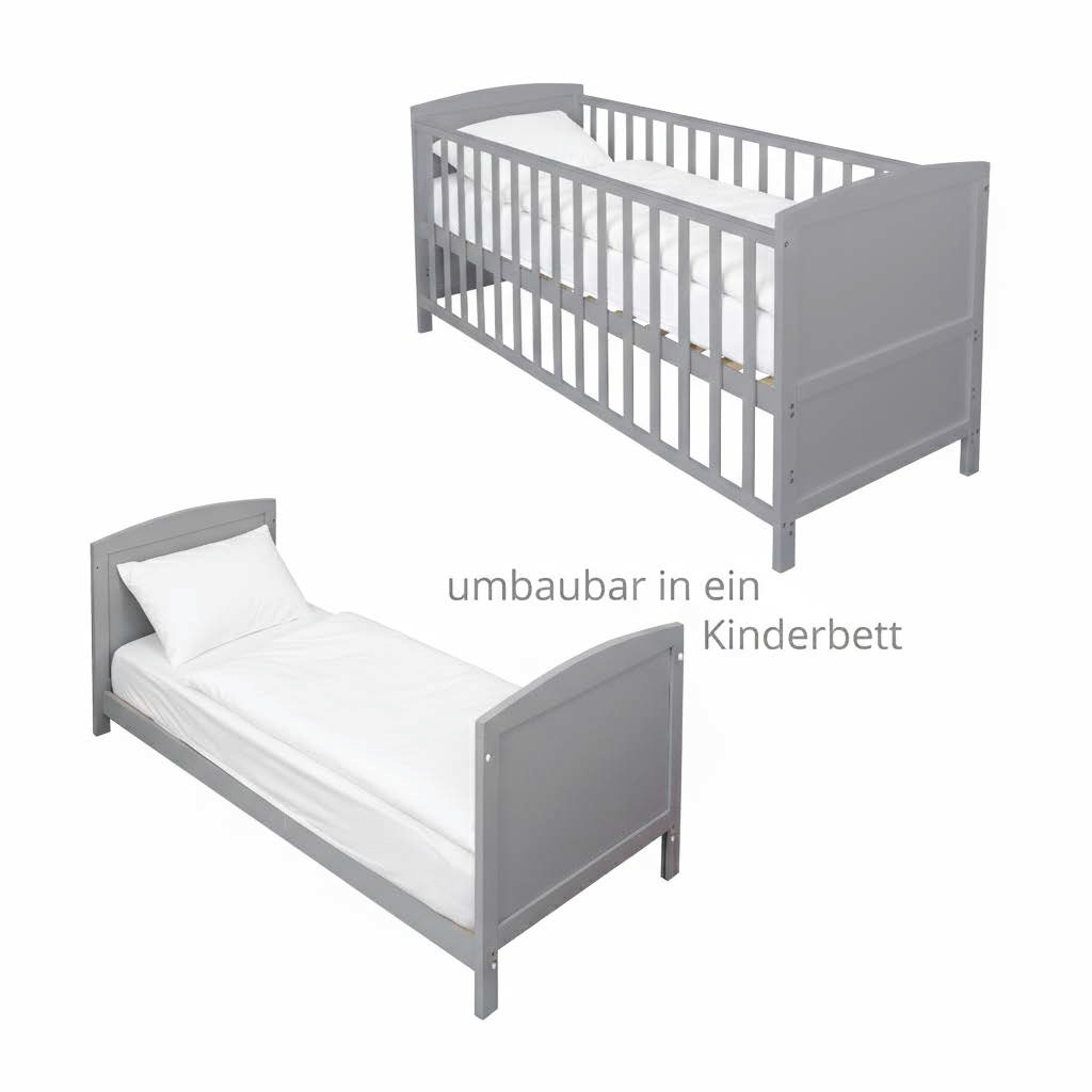 The cot Mika in grey is a high-quality cot and can be easily combined with various nursery furnishings.