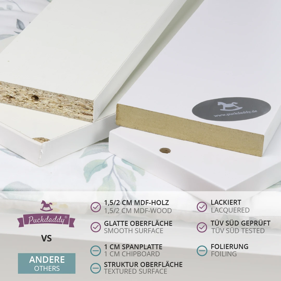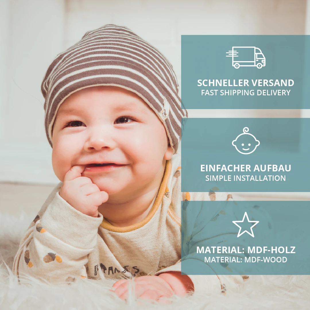 With our baby changing top Fridolin suitable for all chests of drawers with a depth of 45,7 to 47,2 cm, such as Brimmes chest of drawers from IKEA, you can easily transform your favourite chest of drawers into a modern changing unit.